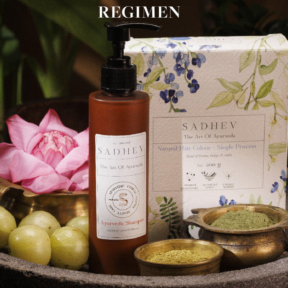 Sadhev’s natural and Ayurvedic hair colours are made from natural dyes like Henna and Indigo, sourced from specific regions to ensure the highest quality. Henna from Sojat, Rajasthan, is known for its conditioning properties, while Indigo from Sadhevana, Sadhev’s own organic farm, provides a safe and natural dye. These ingredients make our hair care range have some of the best hair care products not only to colour your hair beautifully but also nourish and protect your scalp. This makes hair colouring a healthy process.