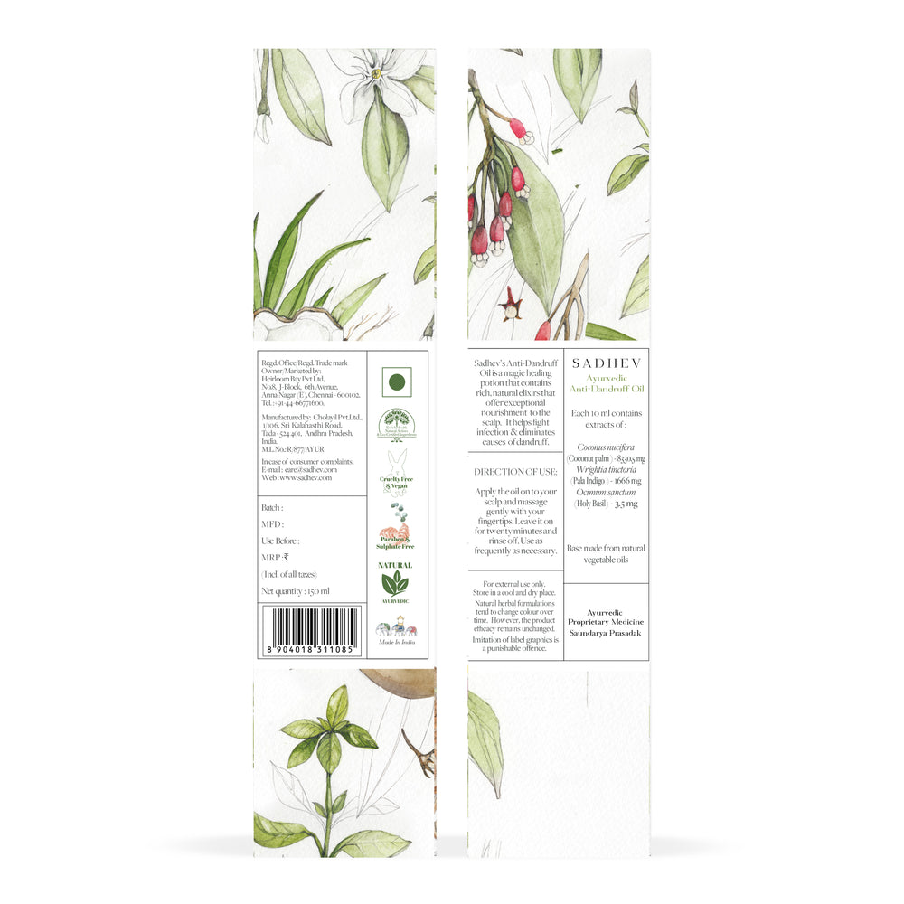 Sadhev's hair oils are crafted with a blend of Ayurvedic ingredients such as Coconut, Holy Basil, Clove Oil, Curry Leaves, Bhringraj etc., that are designed to nourish and rejuvenate your hair and scalp. The synergetic effect of these ingredients in our organic haircare product improves blood circulation, rejuvenates and revitalises hair.