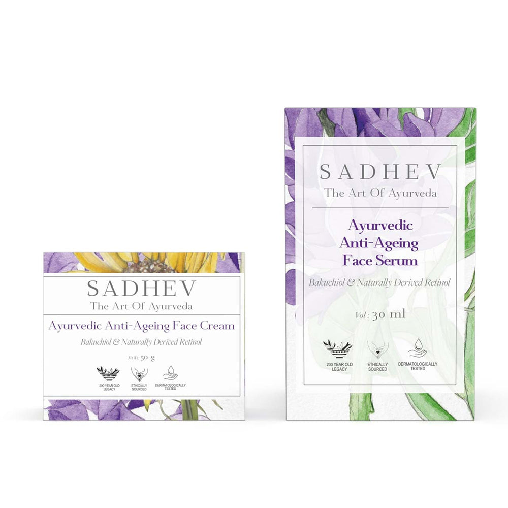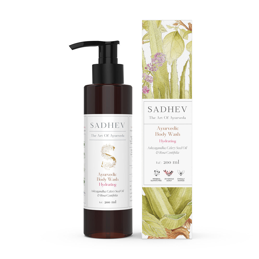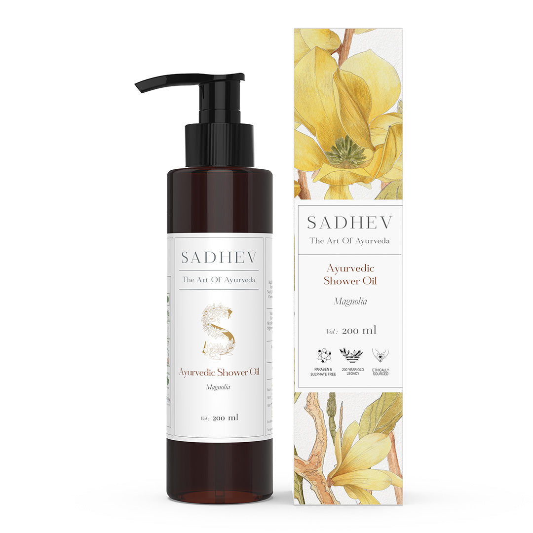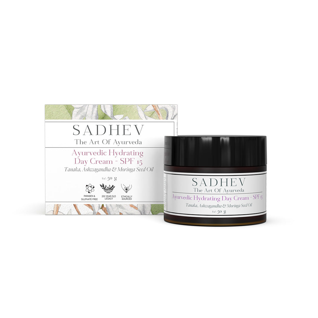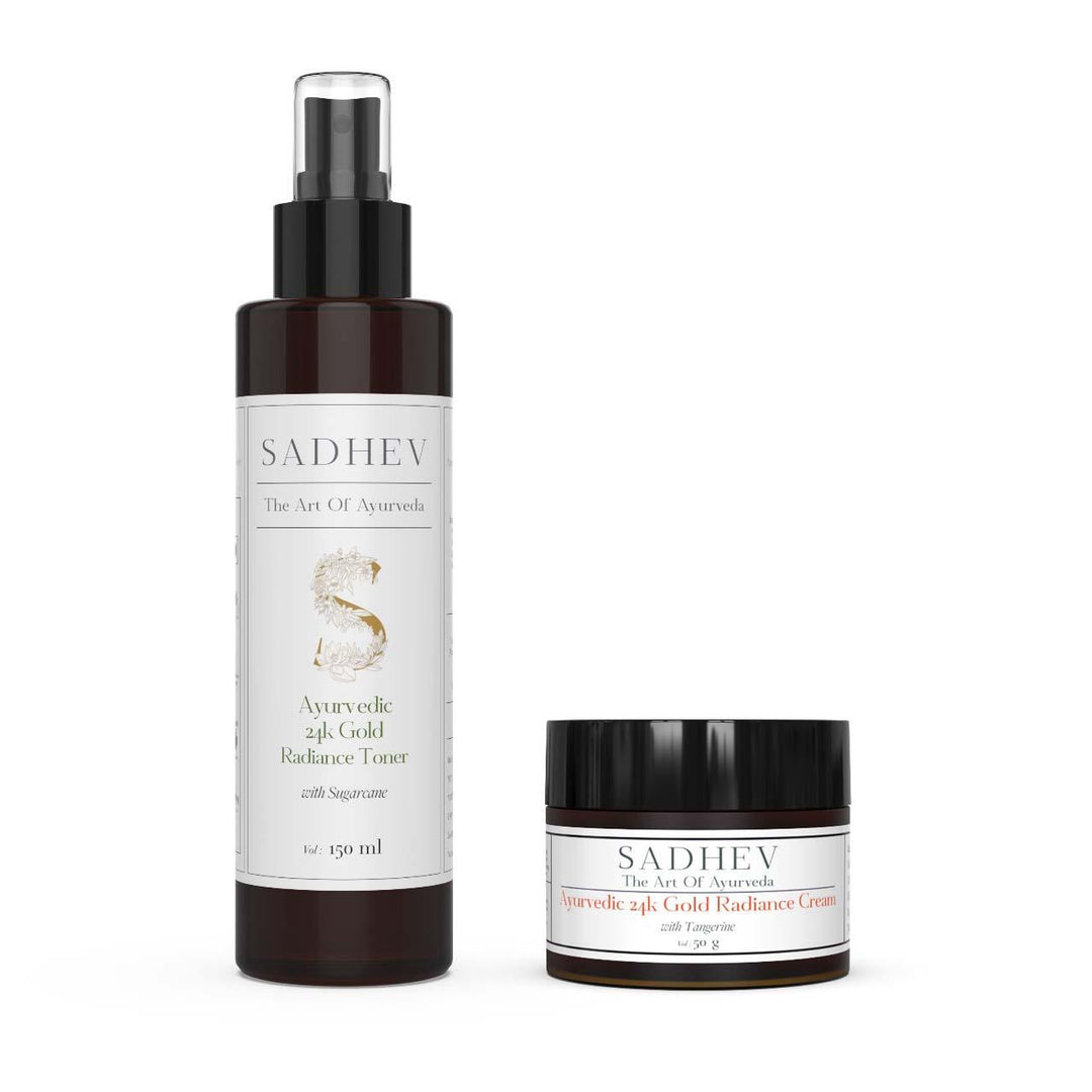 1. Cleanse - Use deep cleansing shower gel with natural ingredients like Shashtika Tailam, Juniper berries, etc. 2 Tone - Opt for pure rose water from Sadhev. 3. Work on specific skin concerns: Vitamin C Serum from Sadhev helps in reducing blemishes and imparts a gentle glow. 4. Moisturise: Apply a hydrating day cream. 5. - Use SPF 15 with Carrot, Indian madder and Licorice from Sadhev.