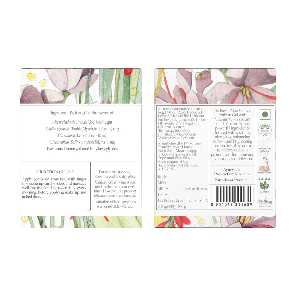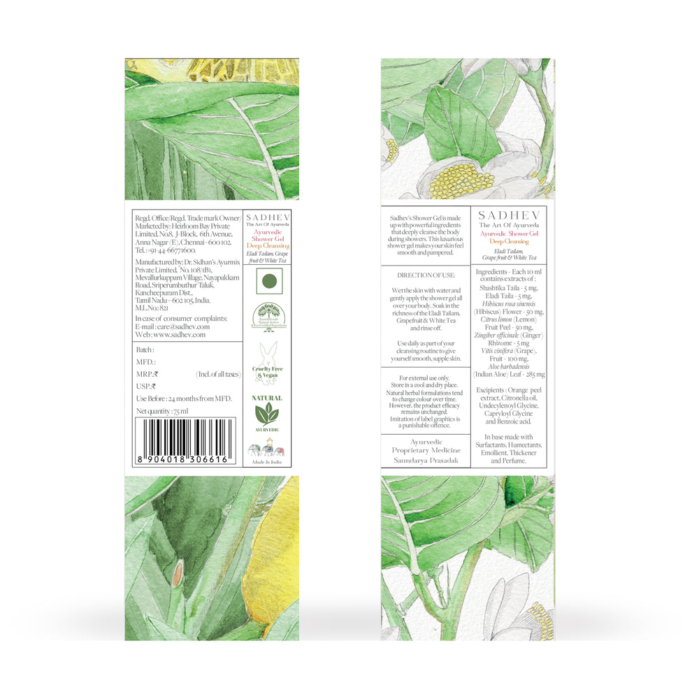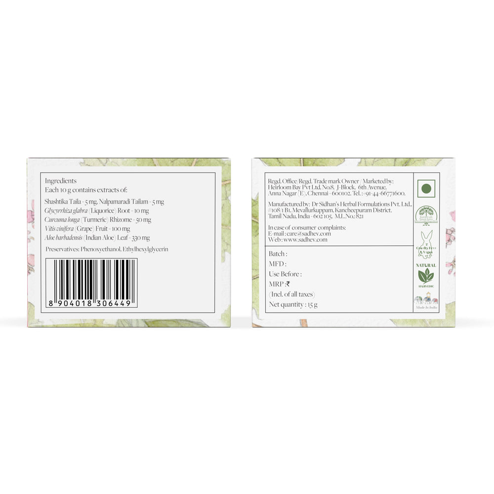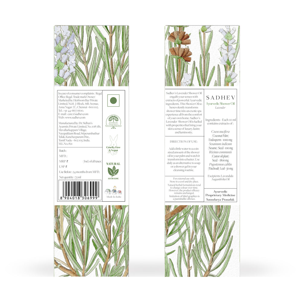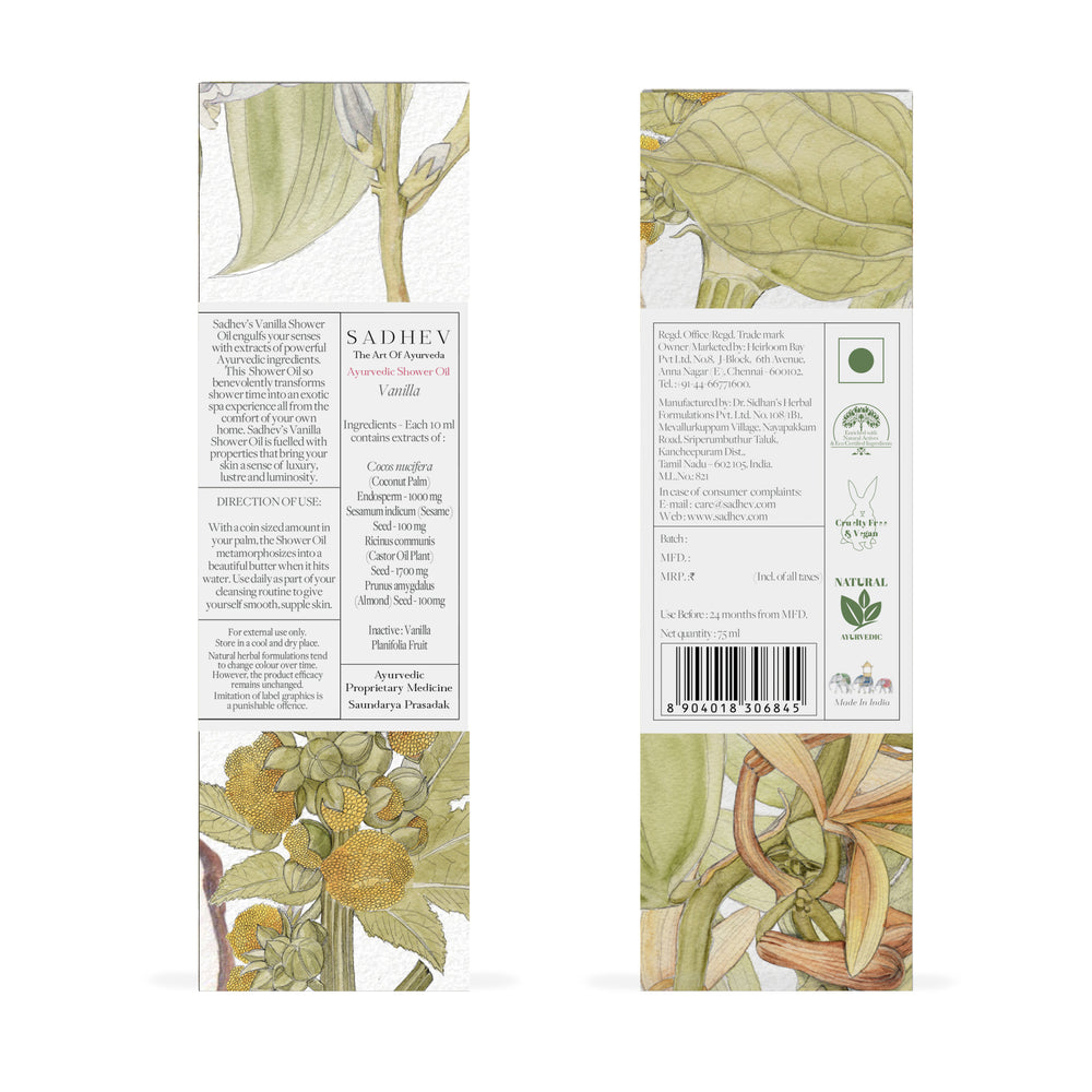 1. Cleanse - Use deep cleansing shower gel with natural ingredients like Shashtika Tailam, Juniper berries, etc. 2 Tone - Opt for pure rose water from Sadhev. 3. Work on specific skin concerns: Vitamin C Serum from Sadhev helps in reducing blemishes and imparts a gentle glow. 4. Moisturise: Apply a hydrating day cream. 5. - Use SPF 15 with Carrot, Indian madder and Licorice from Sadhev.