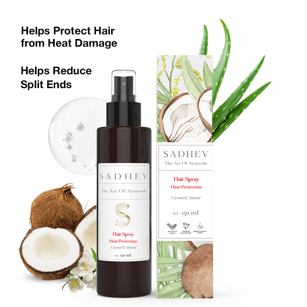 Sadhev’s Heat Protection Spray is a lightweight, non-greasy mist that forms an invisible shield to safeguard your hair from the damaging effects of heat styling tools. Enriched with the nourishing goodness of Coconut and Almond, it helps prevent Breakage, Dryness and Frizz, Hair Smooth, Shiny and resilient with every use.